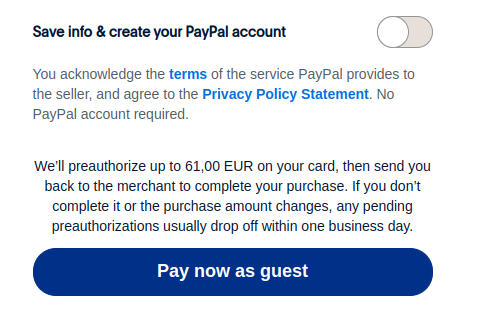 Under the formula is a button that can be pushed to the left side. It enables a payment as a guest possible.
