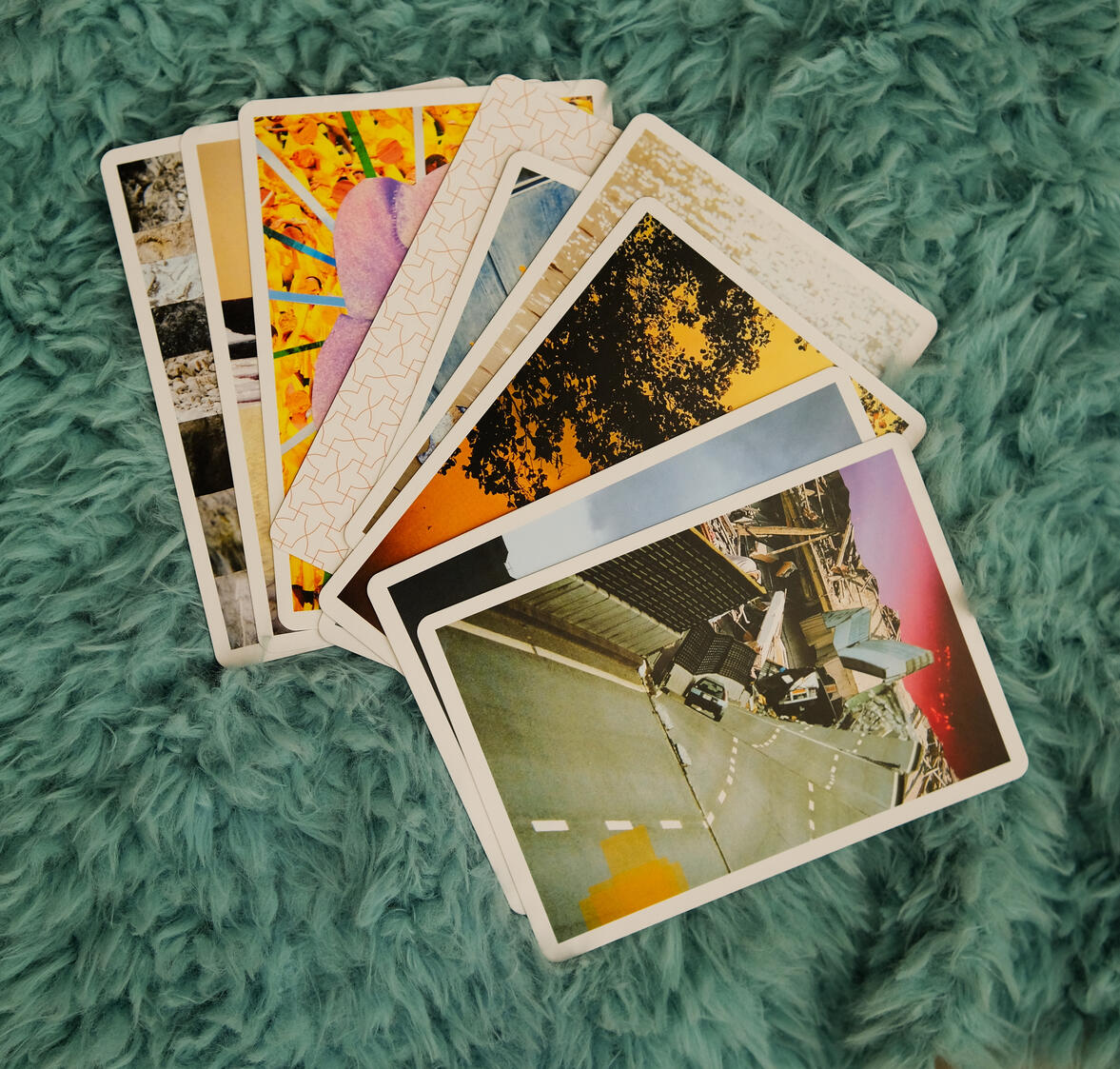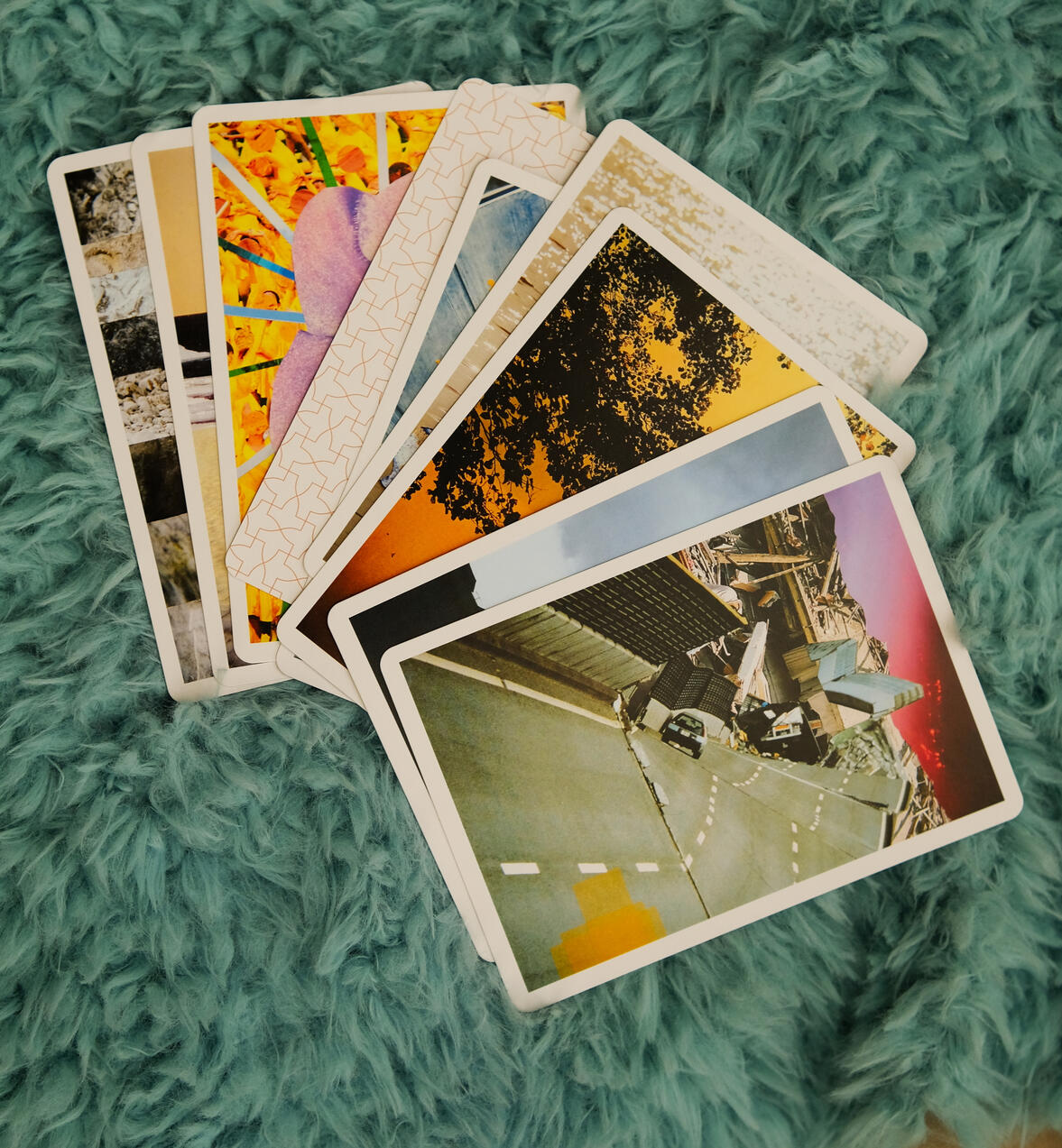 Each of the 35 cards is a high quality print of an analog paper collage created by Friederike Ruff.