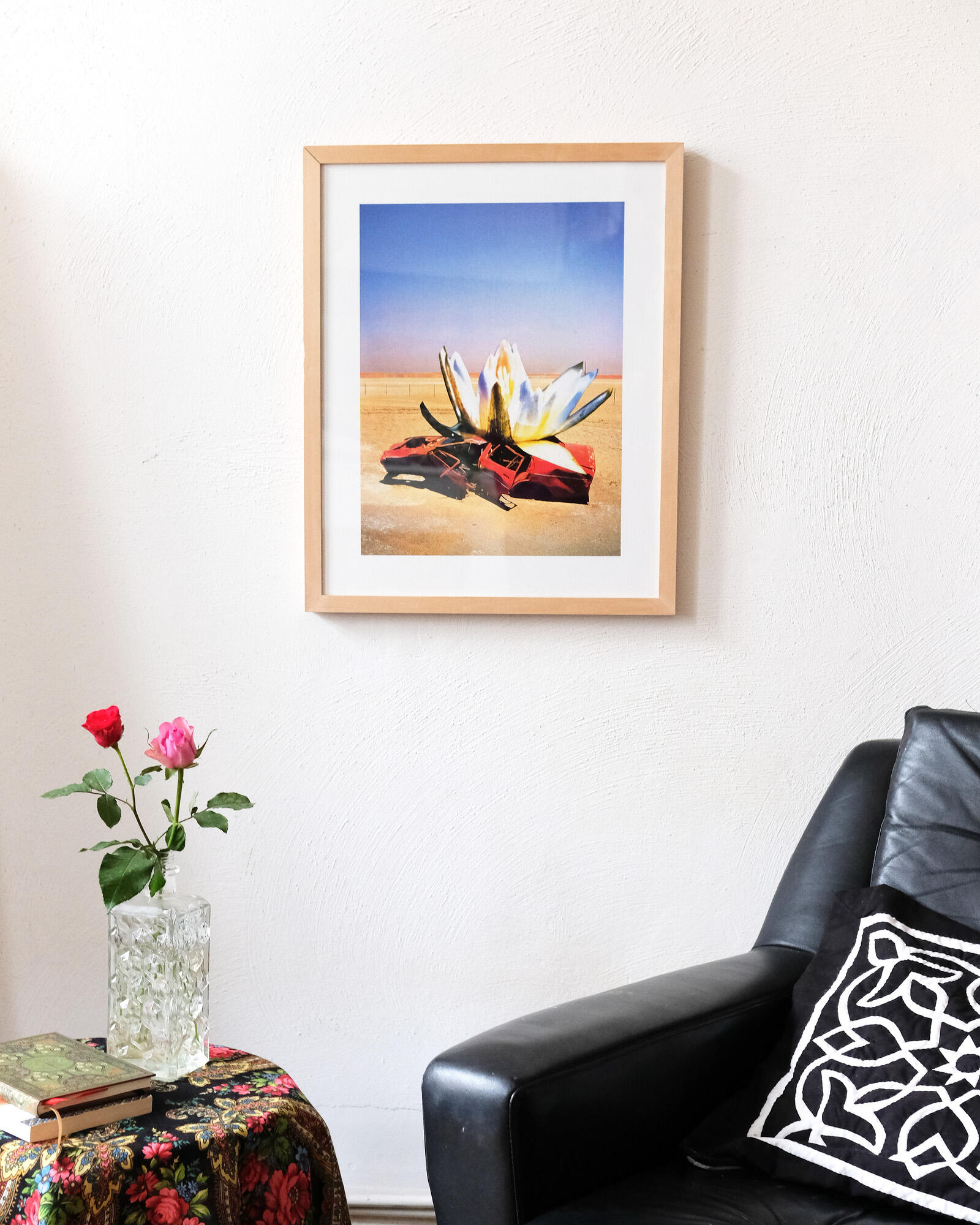 The prints are printed on high quality Hahnemuehle paper and come in a light solid wood frame in the size 40x50 cm.If you are interested in another size or image, please do not hesitate to contact us.